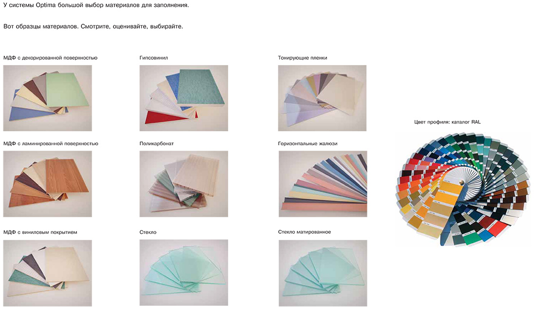 Виды перегородок Optima